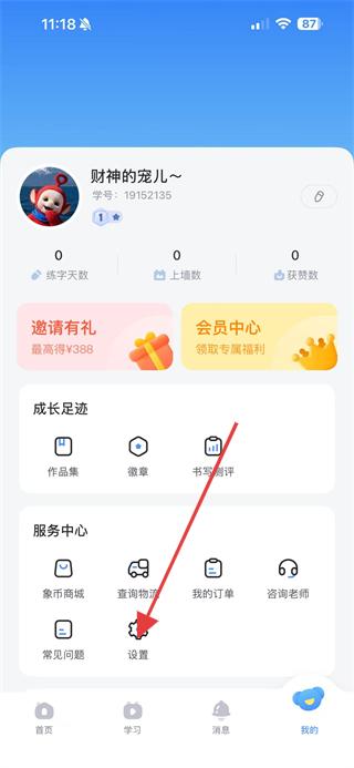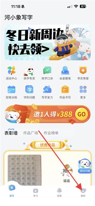 1、打開河小象寫字APP,點(diǎn)擊底部導(dǎo)航欄的我的選項(xiàng),進(jìn)入個(gè)人頁(yè)面。