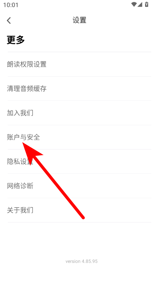3、在設(shè)置頁(yè)面,點(diǎn)擊賬戶與安全選項(xiàng),進(jìn)入個(gè)人信息界面。