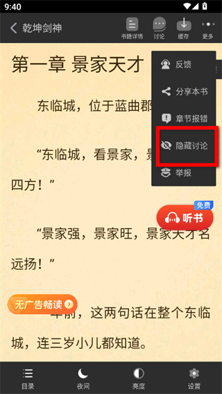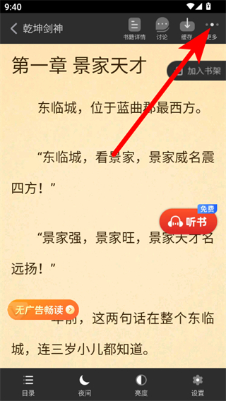 2、在書籍閱讀頁(yè)面,點(diǎn)擊右上角更多選項(xiàng),彈出功能菜單。