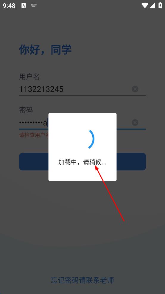 4、點(diǎn)擊“登錄”后,界面會(huì)出現(xiàn)“加載中,請(qǐng)稍候...”的提示,此時(shí)需耐心等待,直至加載完成,完成整個(gè)登錄操作。