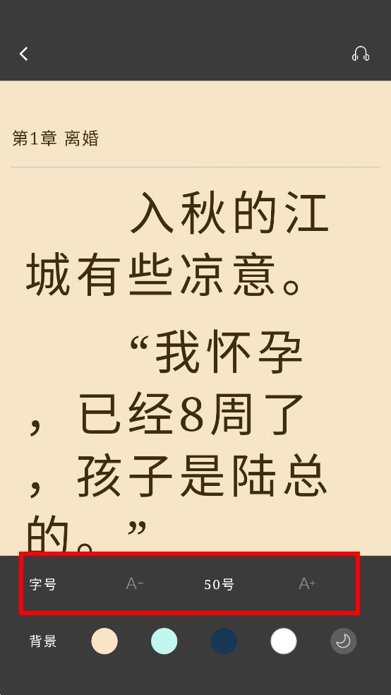 3、每點(diǎn)擊一次A-或A+,字號(hào)會(huì)逐步變化,實(shí)時(shí)預(yù)覽閱讀效果,調(diào)整至舒適的字號(hào)后,退出設(shè)置界面即可。