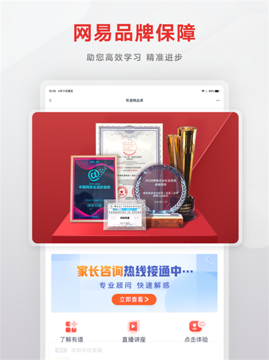 有道精品課是網(wǎng)易旗下網(wǎng)易有道公司出品的在線教育產(chǎn)品。課程涵蓋了高中英語、高中數(shù)學(xué)、四六級(jí)、專四專八、考研、英語口語、托福雅思、注會(huì)、教師資格證等多個(gè)品類,上千門優(yōu)質(zhì)課程。有道精品課強(qiáng)調(diào)課程的獨(dú)特與深度,精心打磨每一類細(xì)分領(lǐng)域的課程品質(zhì),并邀請(qǐng)各領(lǐng)域內(nèi)頂尖名師獨(dú)家合作,旨在為用戶提供最優(yōu)質(zhì)的學(xué)習(xí)體驗(yàn)。