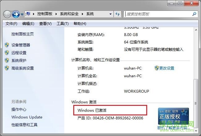 3.如圖所示,win7旗艦版系統(tǒng)顯示已激活