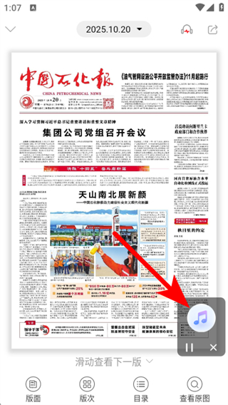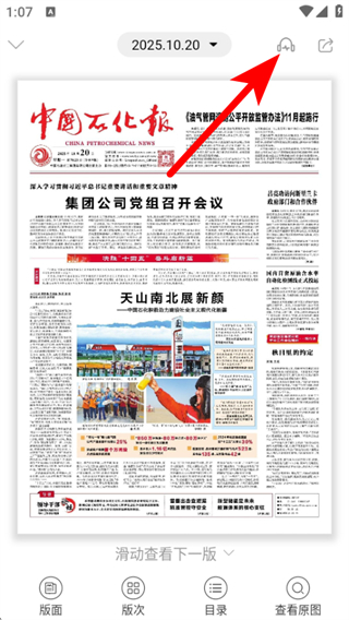 2、在報(bào)紙閱讀的頁(yè)面,需要點(diǎn)擊耳機(jī)圖標(biāo),啟動(dòng)聽(tīng)報(bào)的功能。