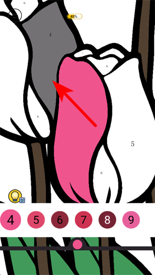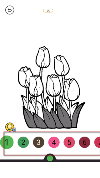 2、在涂色界面,點擊底部的數字顏色選項如數字1、2、3等,然后填充畫面中對應數字的區(qū)域。