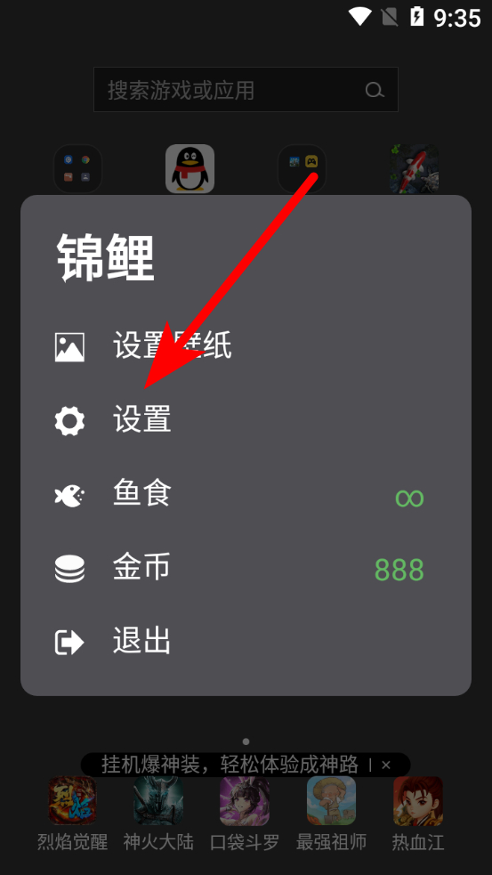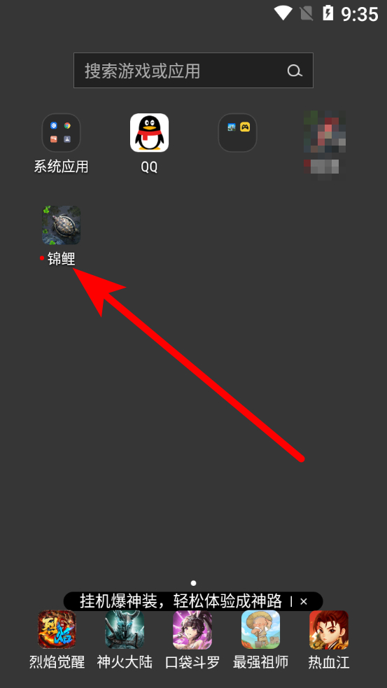 1、在應(yīng)用列表頁面,點(diǎn)擊錦鯉APP圖標(biāo),彈出功能菜單。