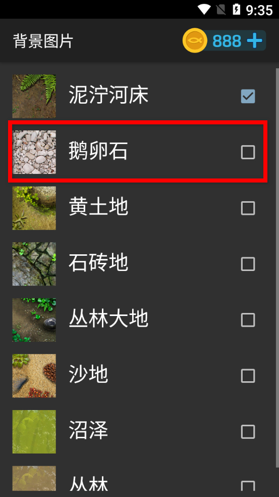4、在背景圖片界面,選擇鵝卵石等壁紙選項(xiàng),即可完成壁紙選擇操作。