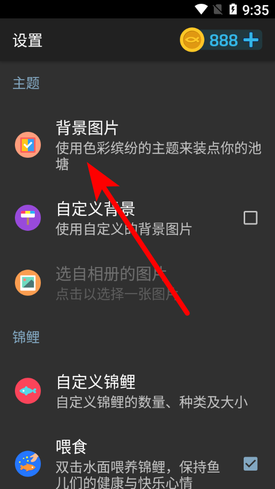 3、在設(shè)置頁面,點(diǎn)擊背景圖片選項(xiàng),進(jìn)入背景圖片選擇界面。