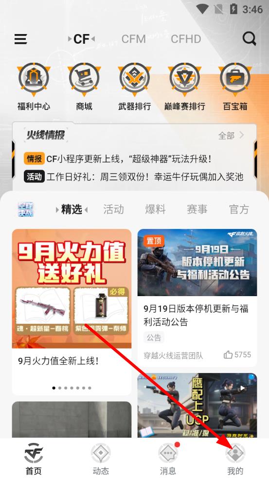 1、打開掌上穿越火線App進(jìn)入首頁,點(diǎn)擊底部導(dǎo)航欄中我的選項進(jìn)入個人界面。