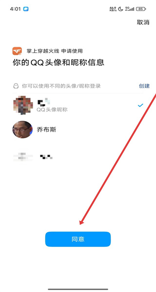 4、在掃描后彈出的登錄窗口中,點(diǎn)擊同意按鈕,即可完成登錄。