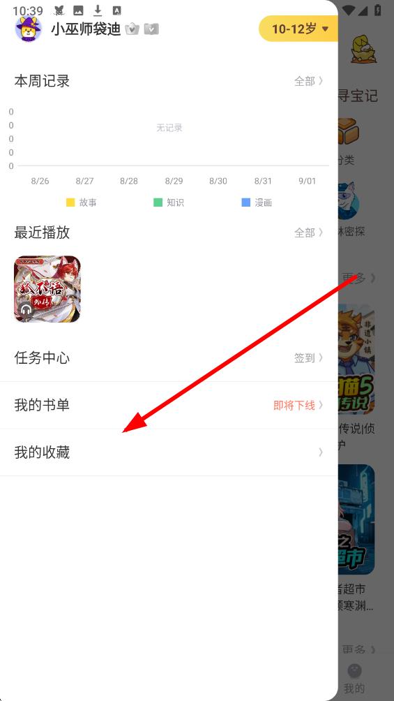 2、在側(cè)邊菜單欄中,下方頁面找到并點擊我的收藏選項。