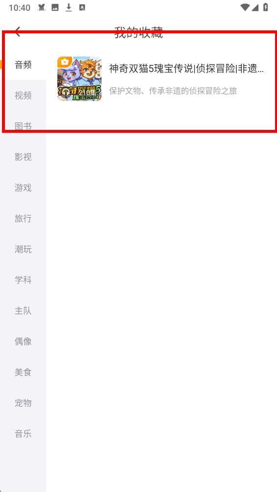 3、進(jìn)入我的收藏頁面后,即可查看已收藏的內(nèi)容,包括音頻、視頻等不同類型的收藏資源。