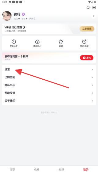 2、在個(gè)人中心頁(yè)面,找到并點(diǎn)擊設(shè)置的功能選項(xiàng)。