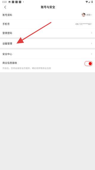 4、在賬號(hào)與安全的頁(yè)面中,點(diǎn)擊設(shè)備管理,即可查看賬號(hào)登錄過(guò)的設(shè)備信息。