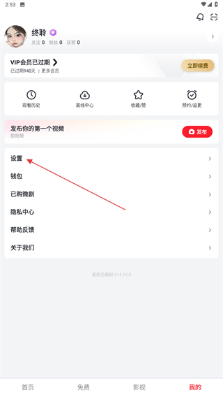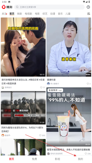 1、啟動(dòng)愛(ài)奇藝隨刻的APP,在首頁(yè)右下點(diǎn)擊我的按鈕。