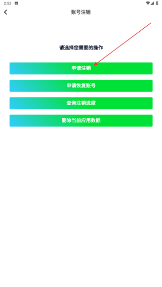 4、進(jìn)入賬號(hào)注銷的頁(yè)面內(nèi),選擇并點(diǎn)擊申請(qǐng)注銷即可。