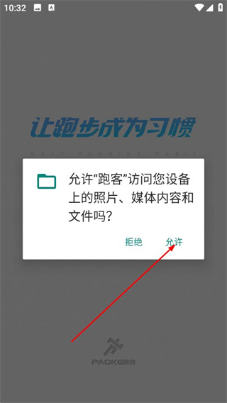 1、打開跑客APP,在權(quán)限請求彈窗中,點(diǎn)擊允許。
