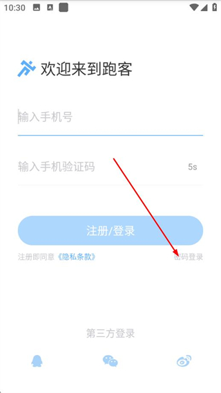 2、在登錄頁面,點(diǎn)擊密碼登錄選項(xiàng)。