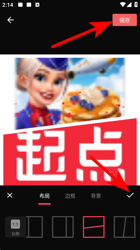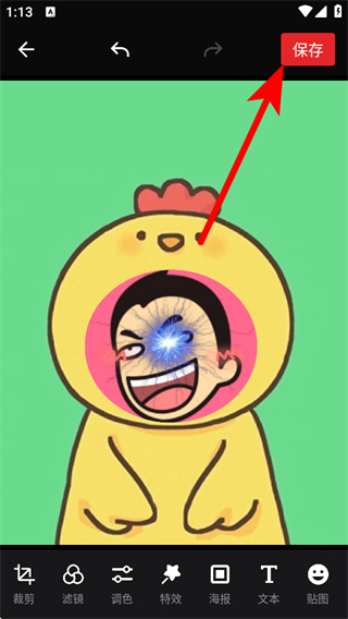 4、編輯完成后,點(diǎn)擊右上角保存,即可完成拼圖照片的p圖操作。