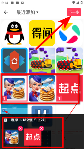 2、在圖片選擇頁(yè)面,選擇要拼圖的圖片后點(diǎn)擊下一步,進(jìn)入拼圖編輯頁(yè)面。