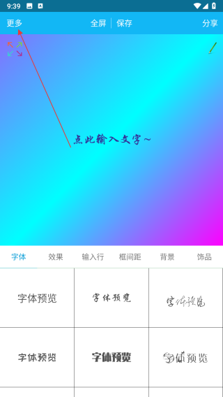 1、打開圖片文字美化應(yīng)用,點(diǎn)擊界面左上角的更多選項(xiàng),展開功能菜單。