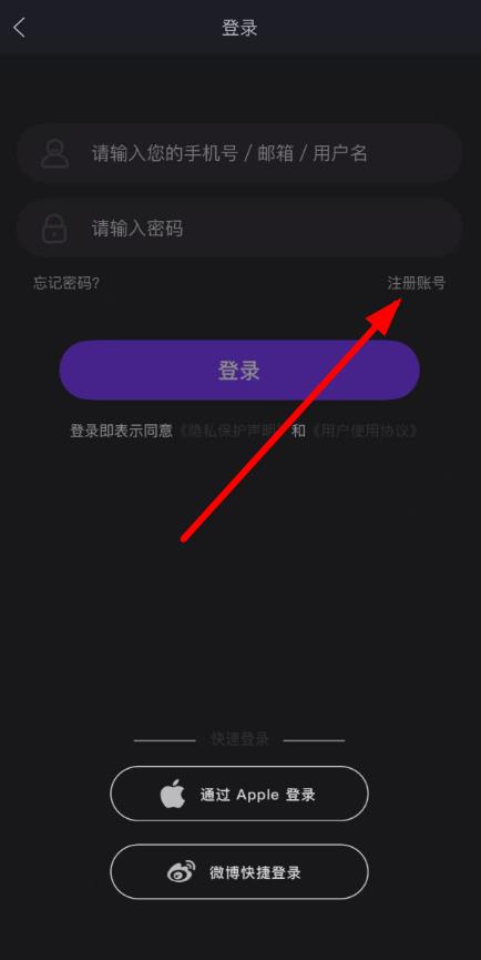 1、打開漫畫島APP進(jìn)入登錄界面,點(diǎn)擊界面右上角的注冊賬號選項,進(jìn)入注冊頁面。
