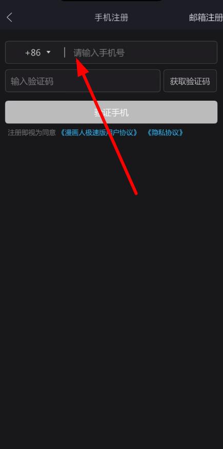 2、在注冊頁面,選擇手機(jī)注冊方式,在對應(yīng)輸入框內(nèi)準(zhǔn)確輸入自己的手機(jī)號,然后點(diǎn)擊獲取驗(yàn)證碼。