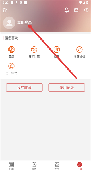 3、進入我的工具頁面后點擊“立即登錄”,進入登錄界面。