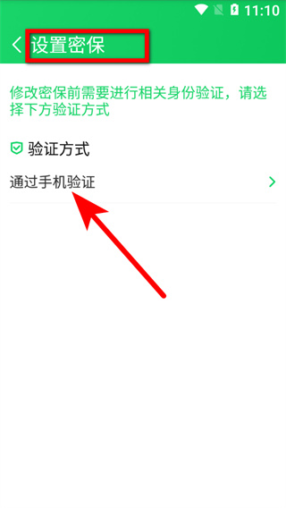 4、在設(shè)置密保頁面,選擇通過手機(jī)驗(yàn)證方式。