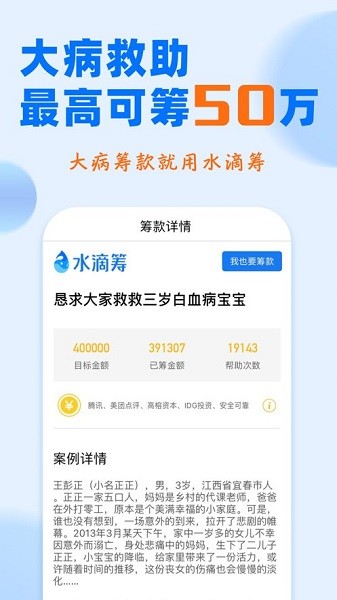水滴籌是由“水滴互助”推出的眾籌平臺(tái)。提供大病籌款、夢(mèng)想籌款、農(nóng)產(chǎn)品預(yù)售等多種眾籌方式。可以快速發(fā)起籌款,分享到朋友圈或社交平臺(tái),獲得更多人的幫助。