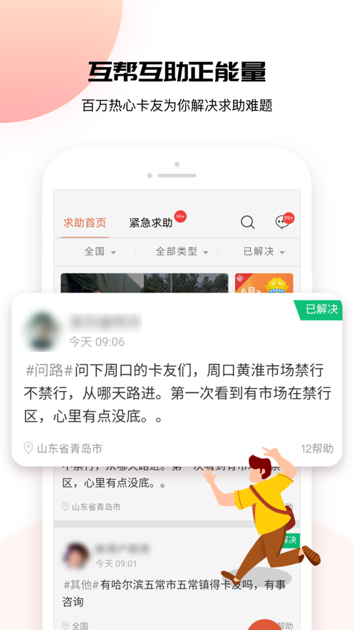3.【求助專區(qū)】卡車人專屬的在線求助社區(qū),路上遇到問題、車輛故障問題、保險(xiǎn)咨詢、法律咨詢,這里都有熱心卡友和各類專家回答您的問題。