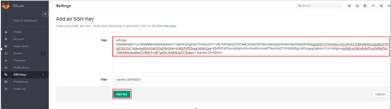 把生成出來的public key復(fù)制粘貼到gitlab上面,配置ssh key。