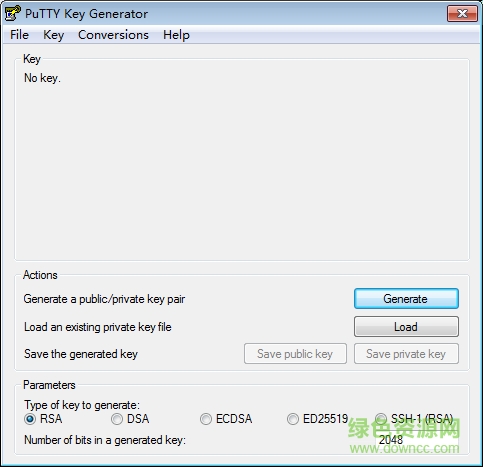 開始-->tortoisegit-->puttygen,進入putty key generator