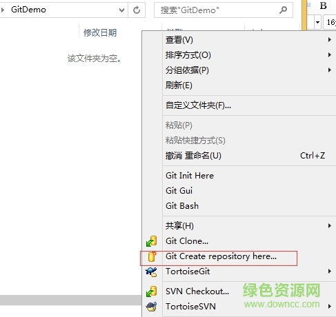 創(chuàng)建一個文件夾gitdemo,然后右鍵--git create repository here...
