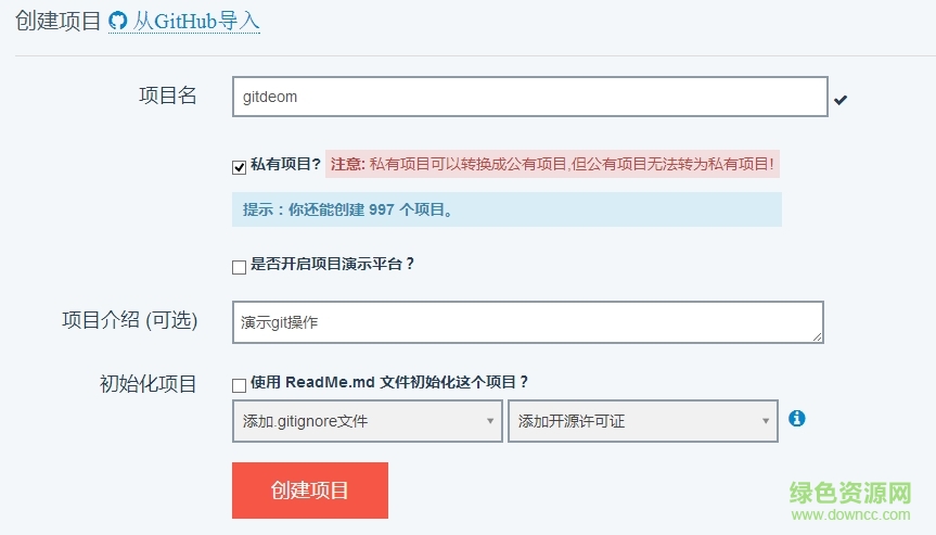 6.1:在oschina上新建一個項目,進入oschina-->git@osc-->新建項目