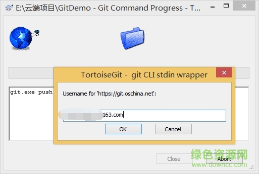 設(shè)置好url,確定。然后開始push,輸入用戶名,輸入密碼就ok了