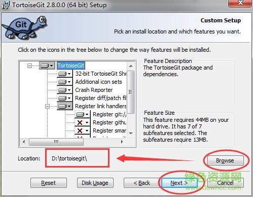 1.在綠色資源網(wǎng)下載tortoisegit,壓縮包中包含了32位和64位兩種,請根據(jù)操作系統(tǒng)位數(shù)選擇,并且已附帶了中文語言包