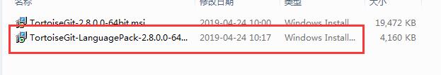 9.安裝中文語言包,雙擊文件夾中的“tortoisegit-languagepack-2.8.0.0-64bit-zh_cn.msi”