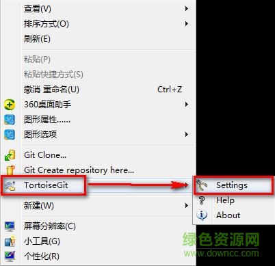 2.在電腦屏幕空白處鼠標右鍵,選擇tortoisegit-settings,就到了配置界面