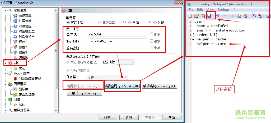 則當(dāng)你推送項目到github等在線倉庫時,會記住你輸入的用戶名和密碼(這里不是用戶的姓名和email哦.)