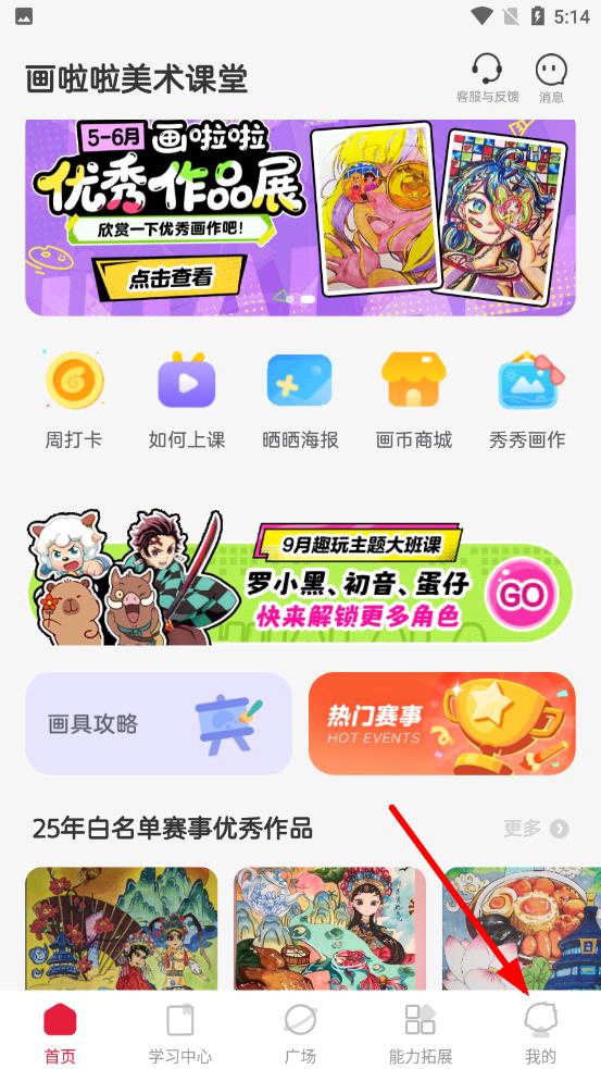 1、進(jìn)入畫啦啦美術(shù)課堂app點(diǎn)擊底部導(dǎo)航欄中我的圖標(biāo)。