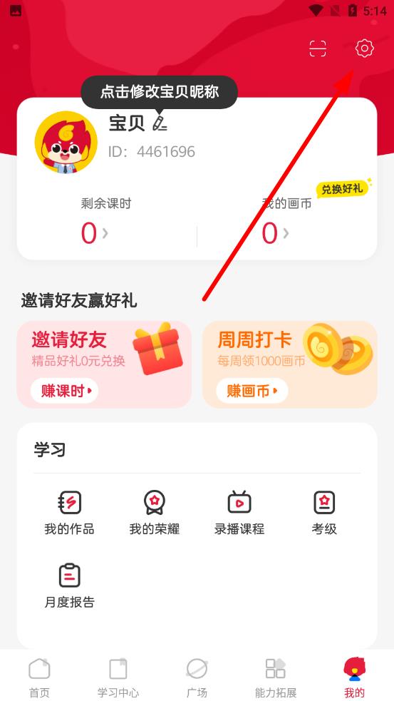 2、在我的頁面點(diǎn)擊右上角設(shè)置的圖標(biāo)進(jìn)入設(shè)置界面。