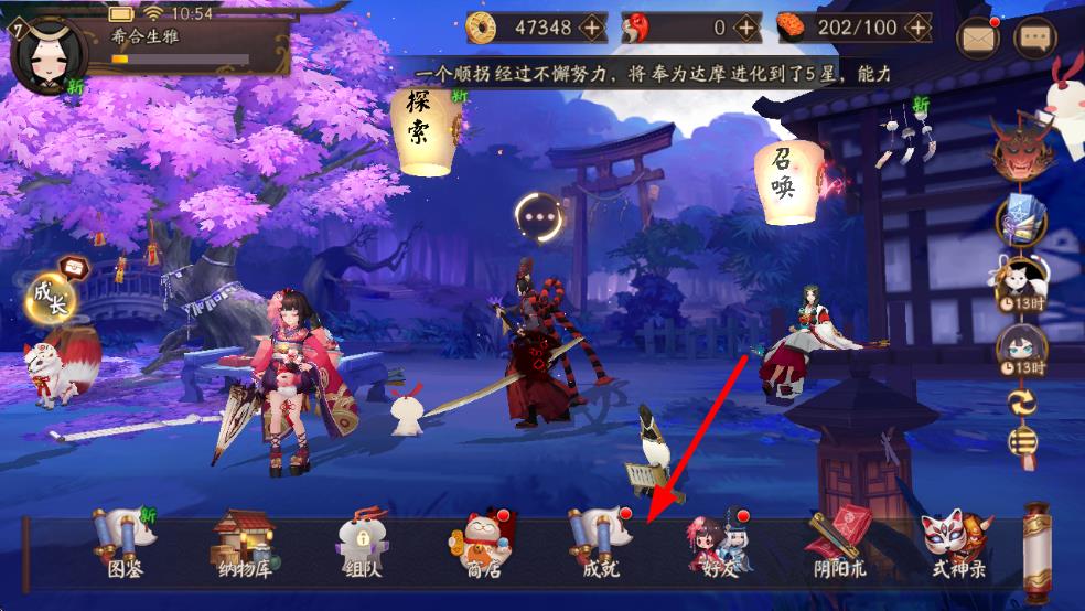 1、點(diǎn)擊游戲主界面右側(cè)箭頭指向的圖標(biāo),再點(diǎn)擊下方菜單欄成就進(jìn)入成就界面。