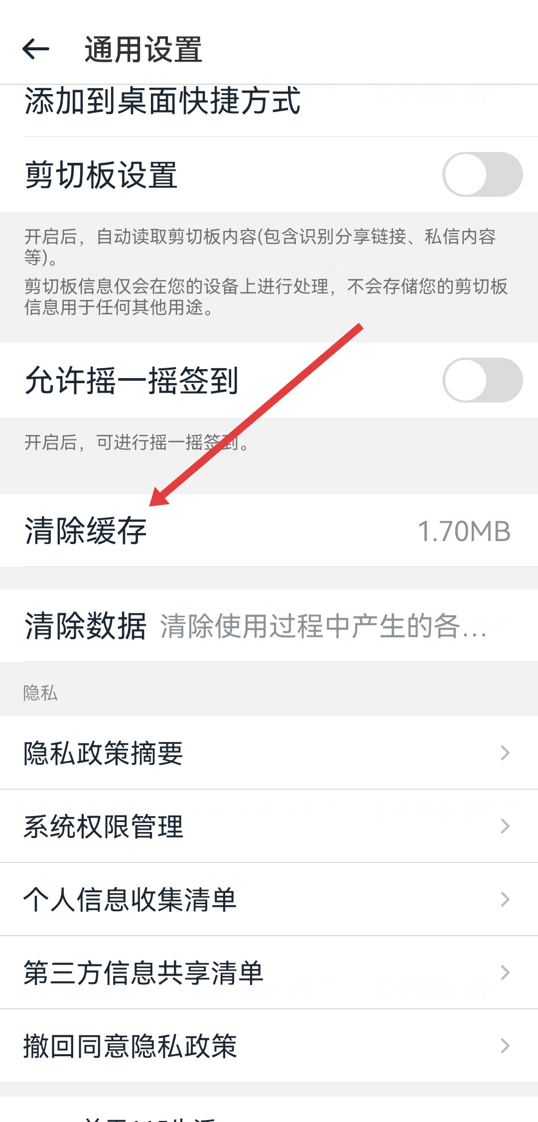2、在通用設(shè)置頁(yè)面中,點(diǎn)擊清除緩存的選項(xiàng),調(diào)出存儲(chǔ)權(quán)限授權(quán)彈窗。