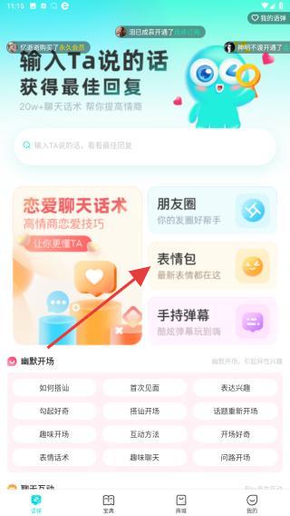 1、打開APP,進入到彈語的首頁中,點擊主頁中表情包的選項進行跳轉(zhuǎn)另一個頁面。