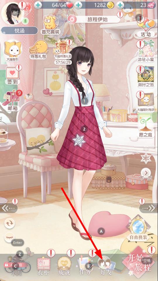 1、打開奇跡暖暖游戲,進(jìn)入主界面,點(diǎn)擊下方菜單欄中的好友圖標(biāo)。