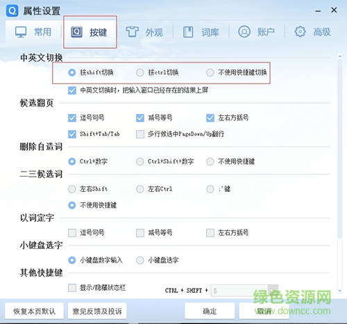 3.在“按鍵”中選擇用ctrl切換中英文