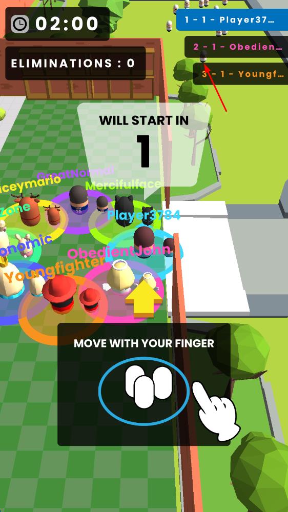 2、游戲開局前,依據提示用手指滑動操控角色移動,在等待區(qū)域熟悉操作,觀察其他玩家位置,為戰(zhàn)斗做準備。