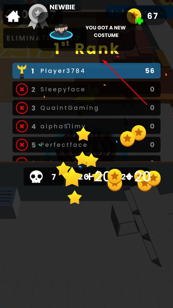 3、對戰(zhàn)過程中,通過策略性移動、吞噬等操作壯大隊伍,淘汰對手,戰(zhàn)斗結束后查看排名,獲取金幣、新皮膚等獎勵。