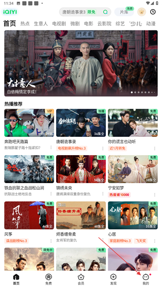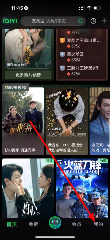 1、啟動(dòng)愛(ài)奇藝的應(yīng)用,在首頁(yè)導(dǎo)航欄中點(diǎn)擊我的按鈕。
